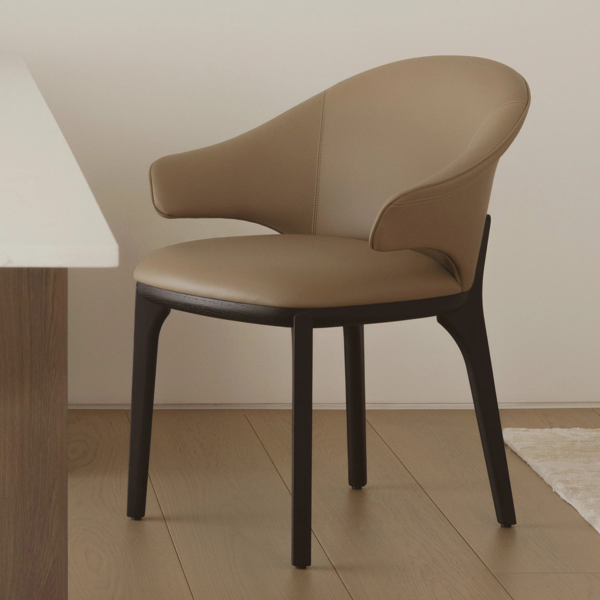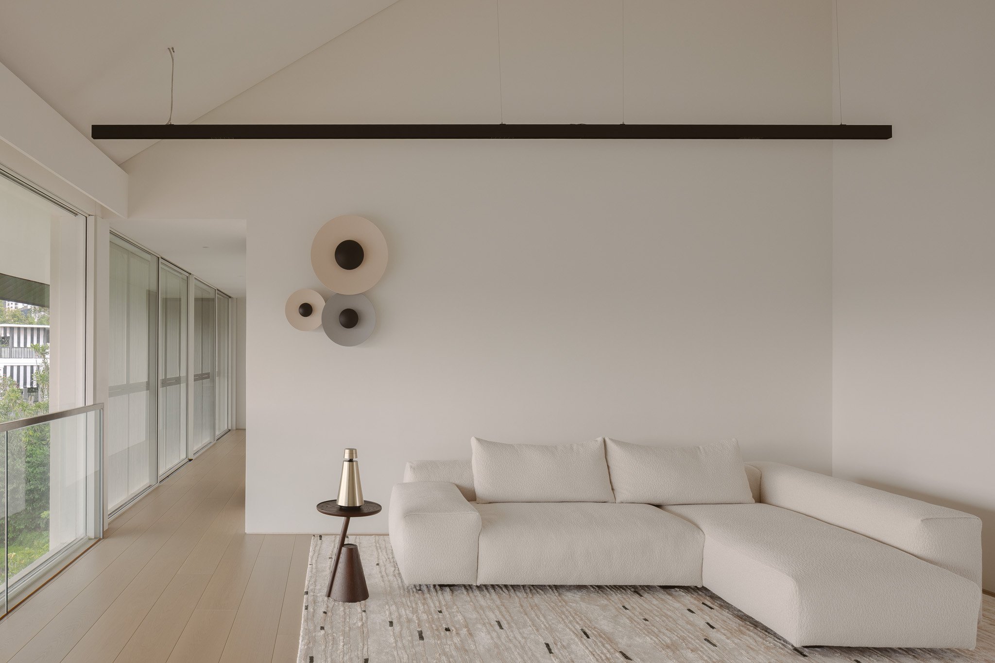 To enter the residence is to step into a softly composed world. High ceilings rise above, while generous voids allow the house to breathe, creating an expansiveness that still feels intimate.
